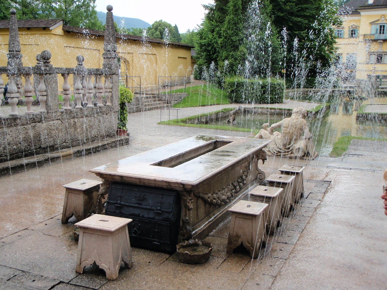 ザルツブルク市内から25番のバスで15分程のところに、ヘルブルン宮殿、庭園、仕掛け噴水、そしてちょっと丘の上になりますが民芸博物館があります。全て共通のチケットは10.5ユーロでした。このお値段で、噴水のガイドツアー、そして宮殿内のオーディオガイドがあるのは結構お得かも。予想もつかないところから水が飛び出してきたり、神話を基にしたたくさんの像、噴水など、とても楽しかったです。