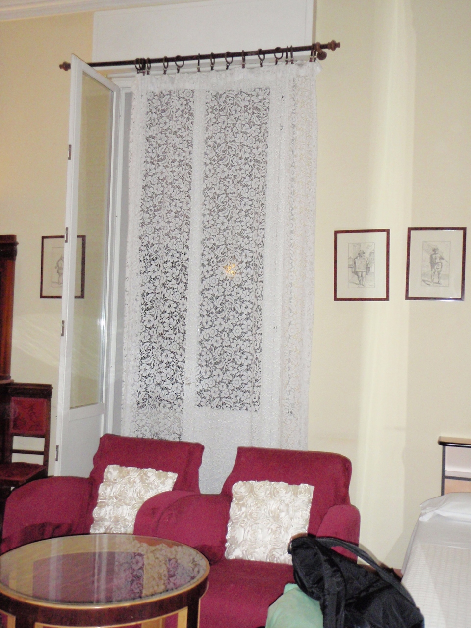 昔の建物の一部をホテルとしているので、広い部屋に高い天井と、とてもクラシカルです。バストイレは部屋の外にあります。フロントがあるのは(確か)5階、泊まったお部屋は3階で、入ってすぐの小さめのロビーに朝食の準備があり、そこから各部屋やバスルームに繋がっていました。