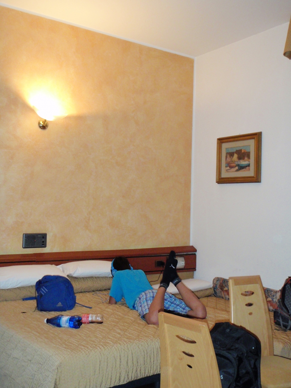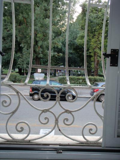 宿泊したお部屋はエコノミートリプルでしたが、エキストラベッド1台追加で、4人で宿泊しました。それでも足の踏み場がない、と言うほど狭くはありませんでした。ちょっとだけ階段を上がった1階のお部屋なので、すぐ窓の外を人が歩いていましたが、暑くて締め切ってクーラーをかけていたので気になりませんでした。窓の外には柵やブライドもありました。