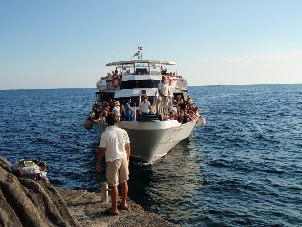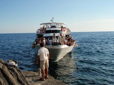 8月だったのでとても混んでいました。行きの船は団体さんの関係かアナウンスはイタリア語とフランス語のみ。帰りの船ではイタリア語と英語でした。遊歩道を歩くのにも、真夏より春か秋の方がお勧めかと思われます。- 旅行時期