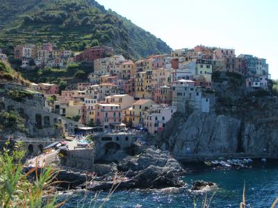 迷路のような通りを通って古城(廃墟)に行き、そこから港を眺めるのも素敵だし、モンテロッソに向かう遊歩道(坂道や階段がたくさんですが)を登り、上から古城を背景に控えた美しくカラフルな家々を眺めるのもお勧めです。レストランもたくさんあるので、食事にも軽食にも困りません。チンクエ・テッレの中でも、是非訪れて欲しい村です。