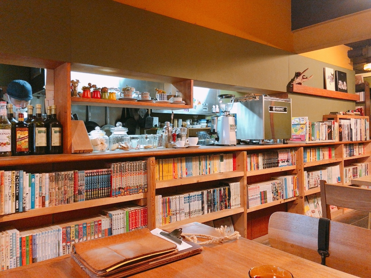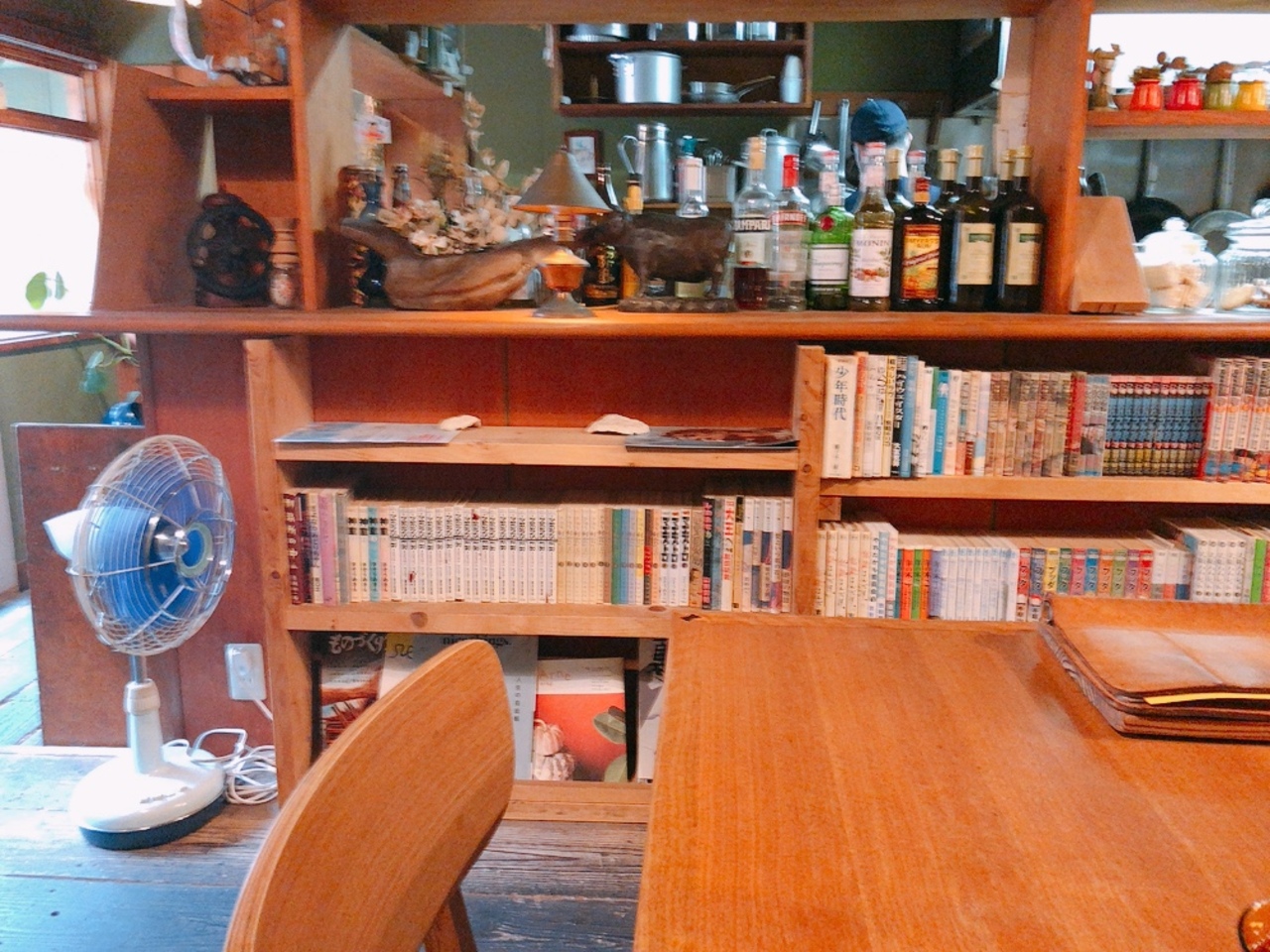 店内は昭和な空気感が漂う感じで(わざとらしくブリキの看板やおもちゃが置いてあるのではなく、扇風機などが昭和のものでセンス良くまとまっている)、本棚にはたくさんの漫画もあり、ひとりで来てもゆっくりと過ごせそうでした。
