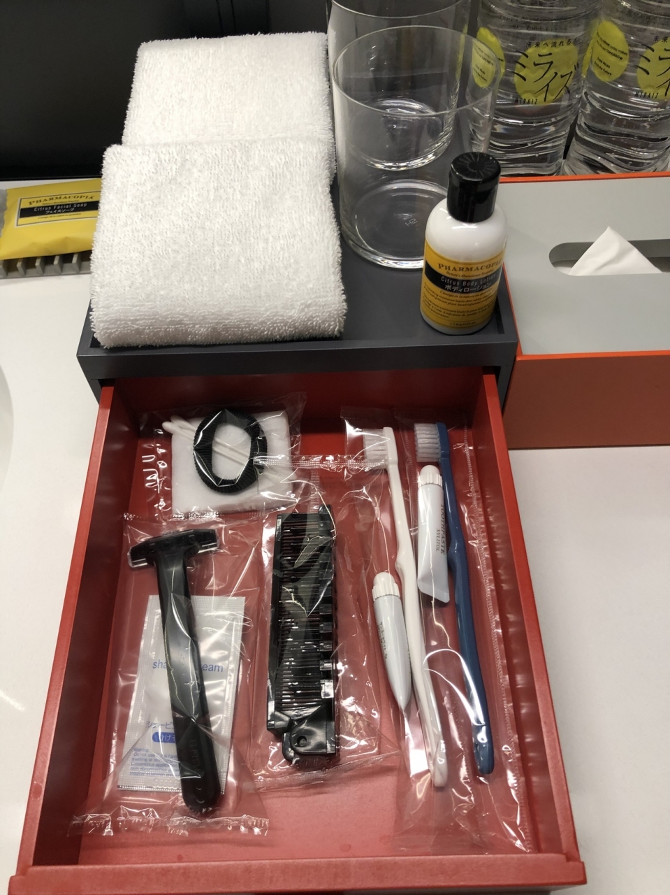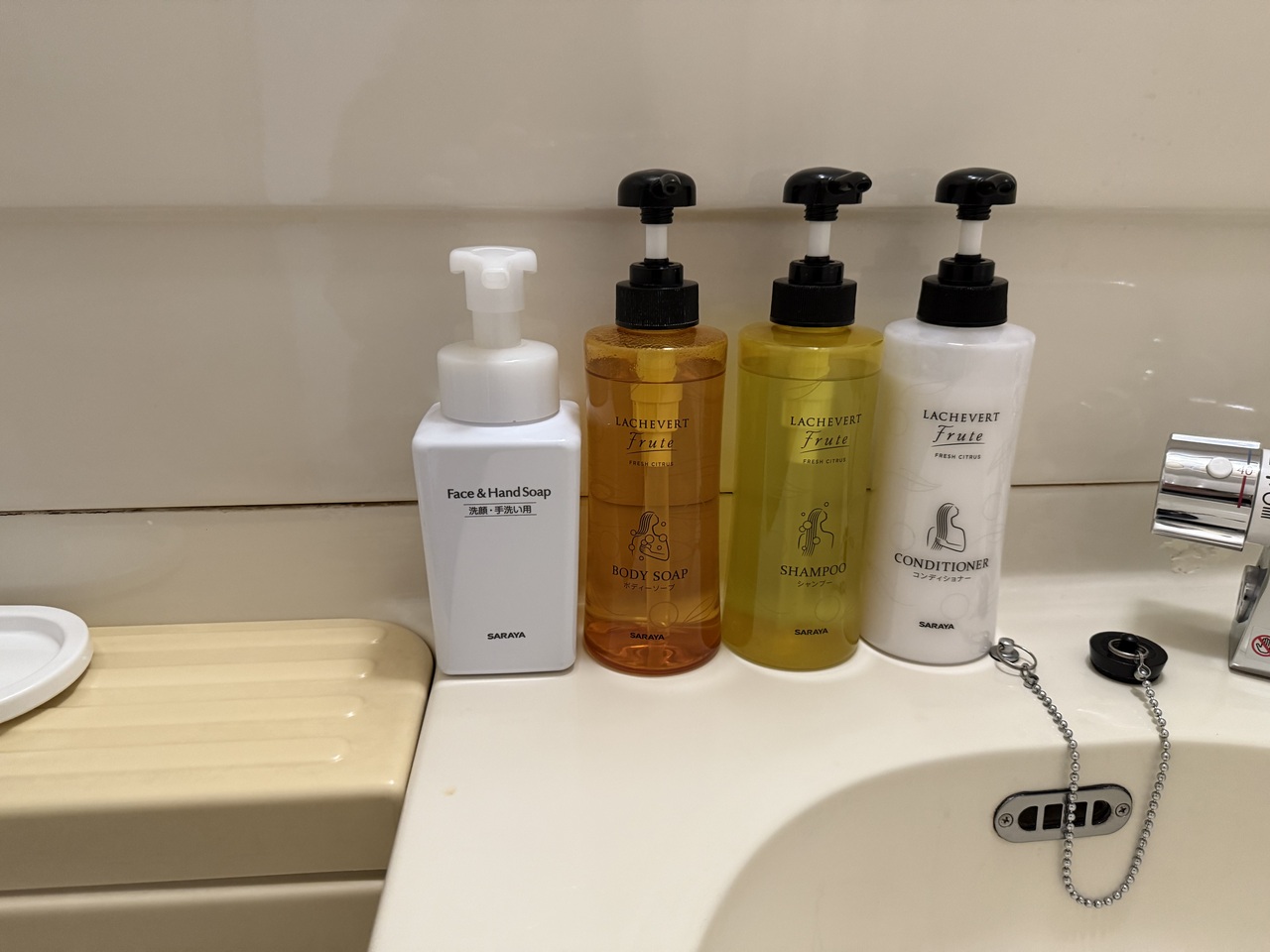 アメニティ類はフロントからセルフで持っていくスタイルで無駄がありません。