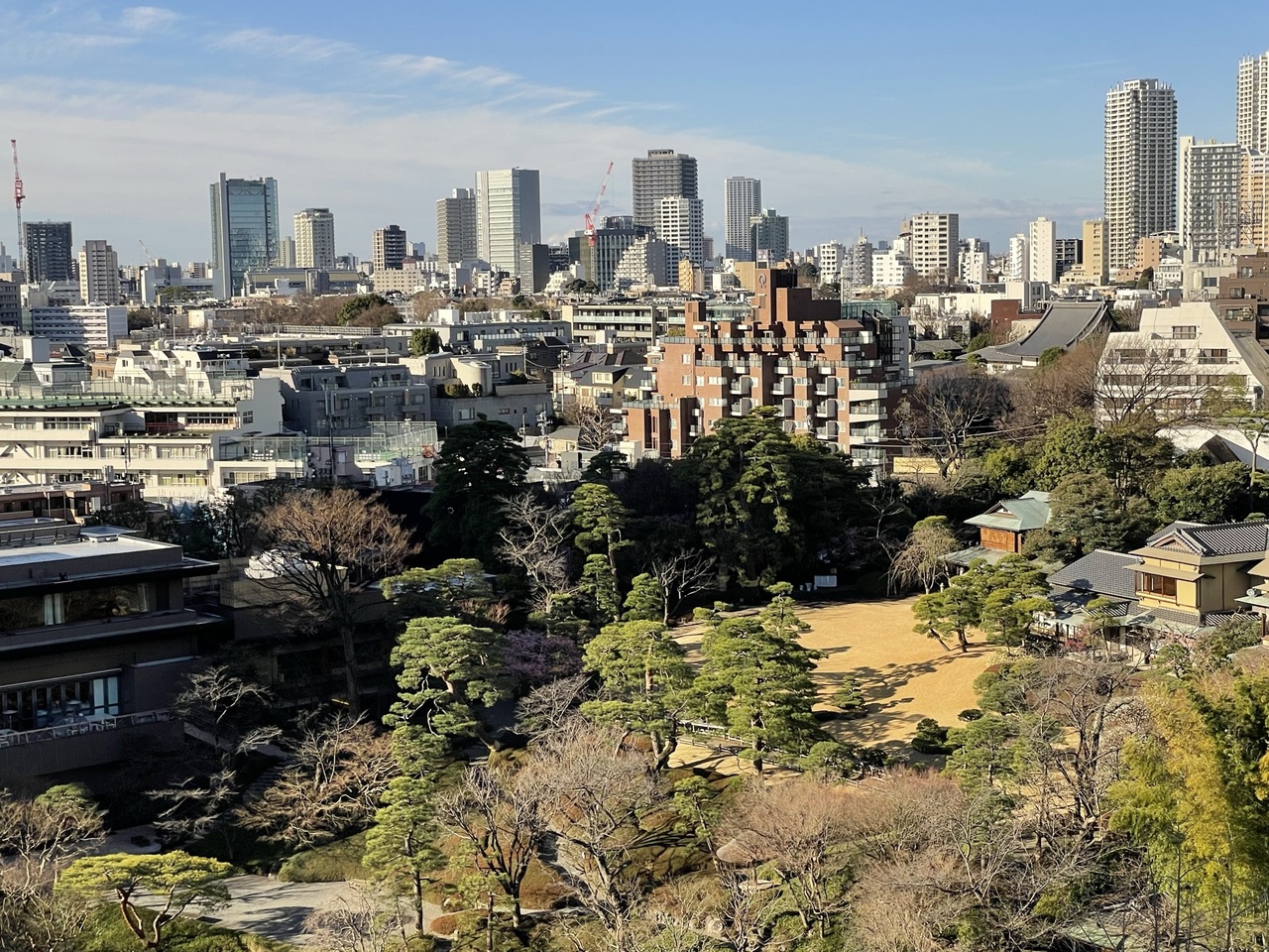 隣が八芳園なので、目の前には日本庭園と広い芝生、遮るものがないです。(部屋による)