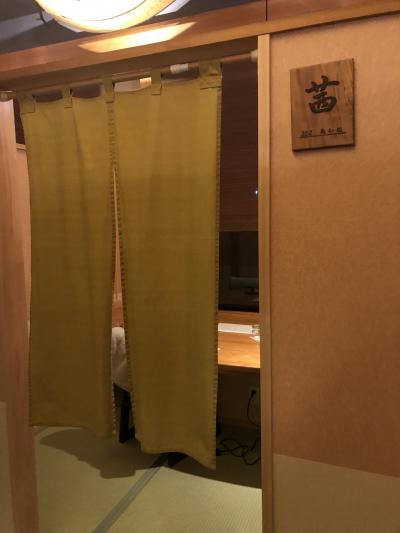 食事はお食事処でいただく形式で、部屋の名札がついています。決まった席でいただく。派手さや豪華さはありませんが、どれも普通に美味しく、量も適量。