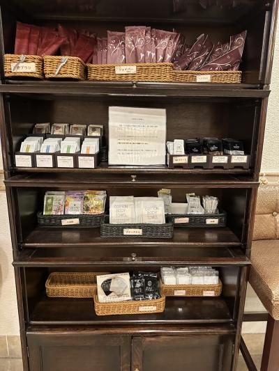 ホテルのアメニティ類はフロント前から持っていくスタイルで、BBクリームまであってびっくり。