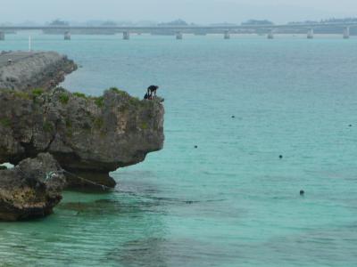 天気は曇り、それでも海の色は透明で素晴らしい景色が望めます。運が良ければ橋の上から海がめやマンタが見られることもあるそうです。レンターカーのカーナビが古く古宇利大橋が表示されずずっと海の上を走っているように表示されていました。不安な方は新しいカーナビが搭載されているレンタカーを借りられることをお勧めします。