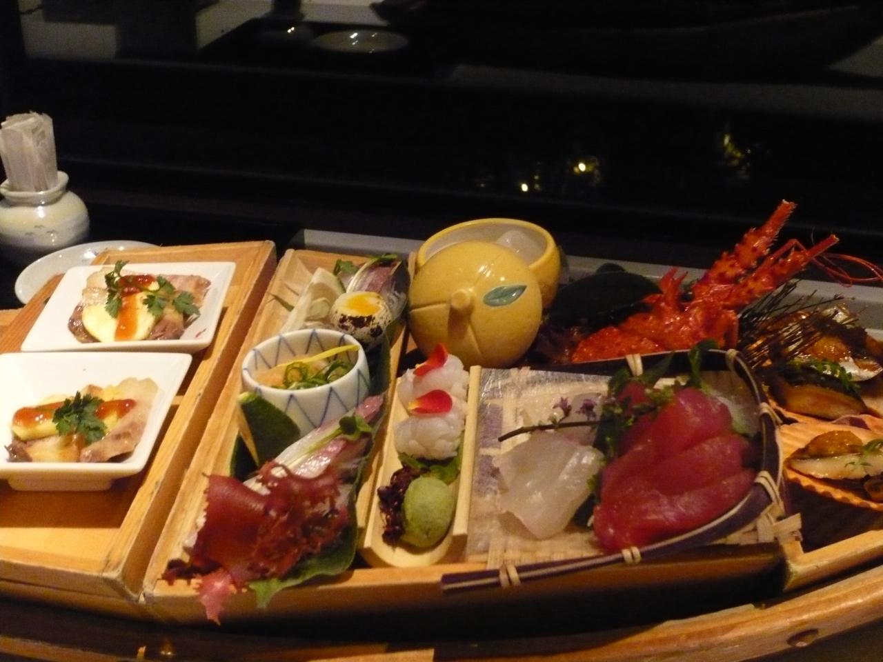 なかなか予約が取れず、取れたのは3日目の8時でした。カウンター希望の方はかなり前からの予約が必要です。初めにお造り、お寿司の盛り合わせを注文。後は大好物のムラサキうに、ひら鯵、金目鯛の炙り、カンパチなどなど、どれも絶品です。またカウンターに座ればその日のお勧めや、創作寿司も握っていただけます。以前に比べますと少しお値段が上がったような気がしました。3人で28,000円、アルコールなしです。駐車場有り。