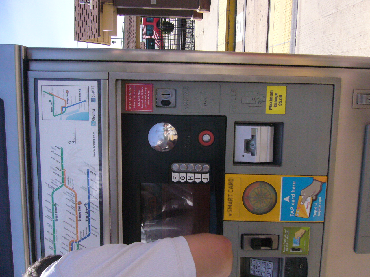 MTSのチケット(compass card)は駅で購入します。販売機の画像を掲載しました。まずcompass cardを2ドルで購入し目的地までの料金を払います。また1Day-passが5ドル、2Day-passが9ドルです 。トロリーは現地の人が利用する安全な乗り物です。改札は無く、利用者の良心に任されているところがサンディエゴらしいです。多く若者は普通に自転車を持ち込んでいました。ダウンタウンやオールドタウンやミッションバレーに行くにもとても便利です。