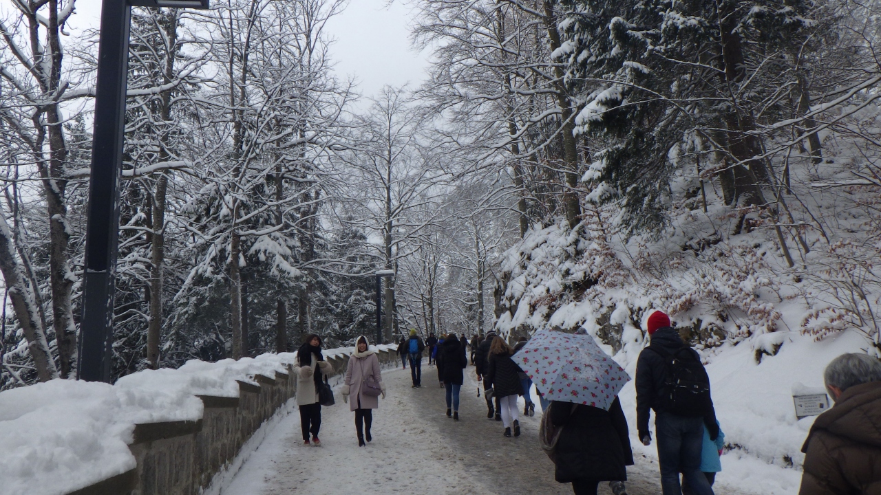 麓からお城まで40分~1時間ほど坂道を上ります。片道3ユーロで馬車もあります。ツアーに参加して行ったので予約時間に見学できました。