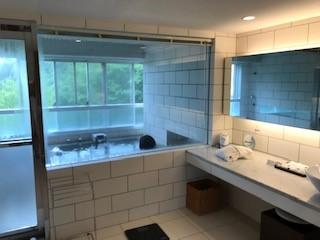 - 悪天候で露天風呂が利用しずらかったですが、ぬるめの浴槽もあり景色も良かった