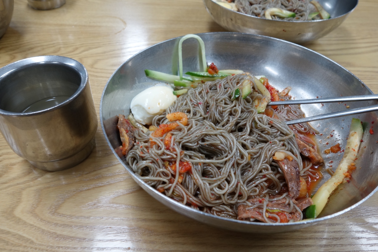 麺が好きなので調べて行ってみました。めちゃくちゃ美味しい。まず、主人と私で美味しいと言われているビビン冷麺を注文。お店の人が丁寧に食べ方を教えてくれます。あまりに美味しいので主人と水冷麺を1人分追加したら、言わなくてもとりわけの皿を持ってきてくれた。丁寧で好感持てます。水冷麺もとても美味しくて、日本では絶対に食べれないおいしさです。やや行きにくい場所ですが麺好きな方にはおすすめです。