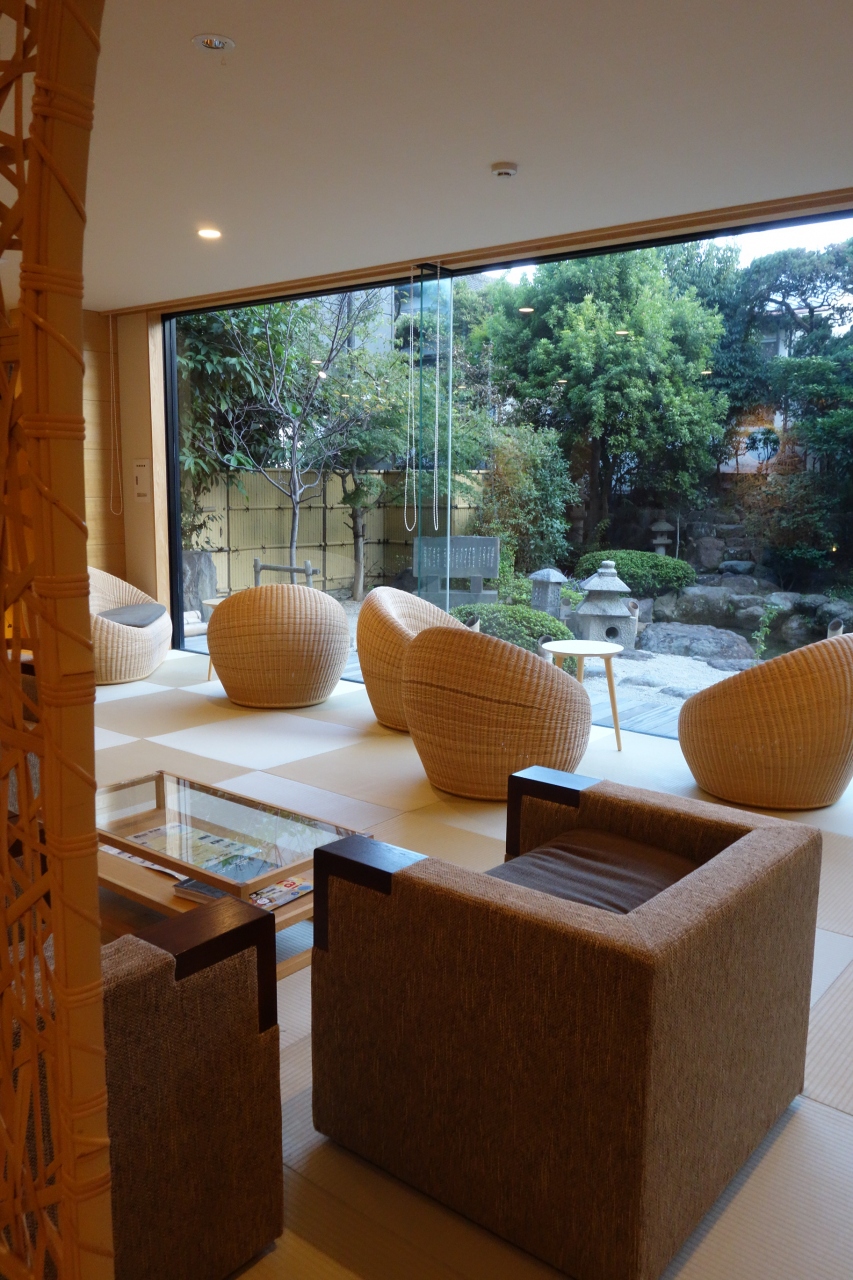 水族館から帰るとすぐにチェックイン出来て、ロビーが竹細工のパーティションで
