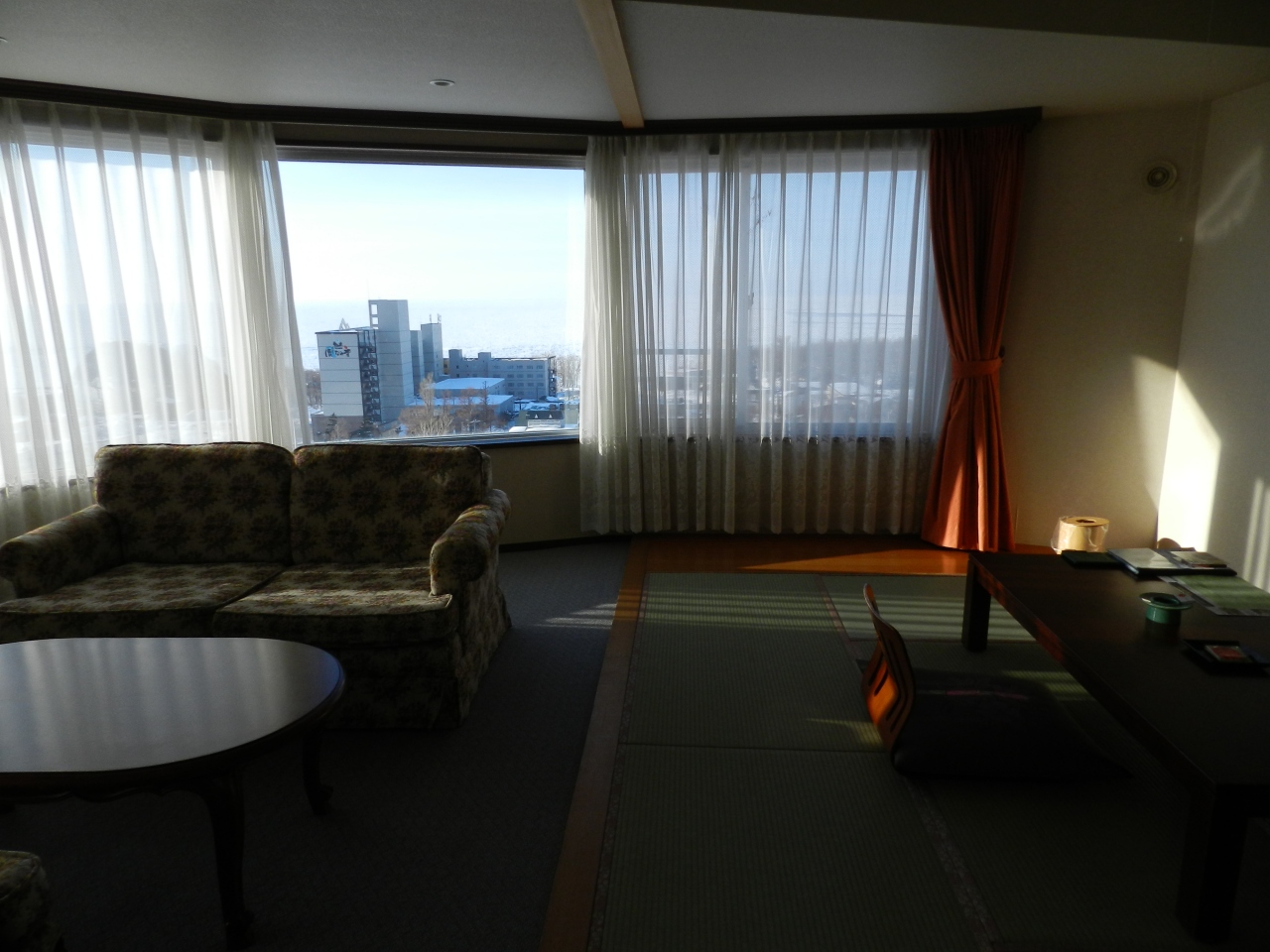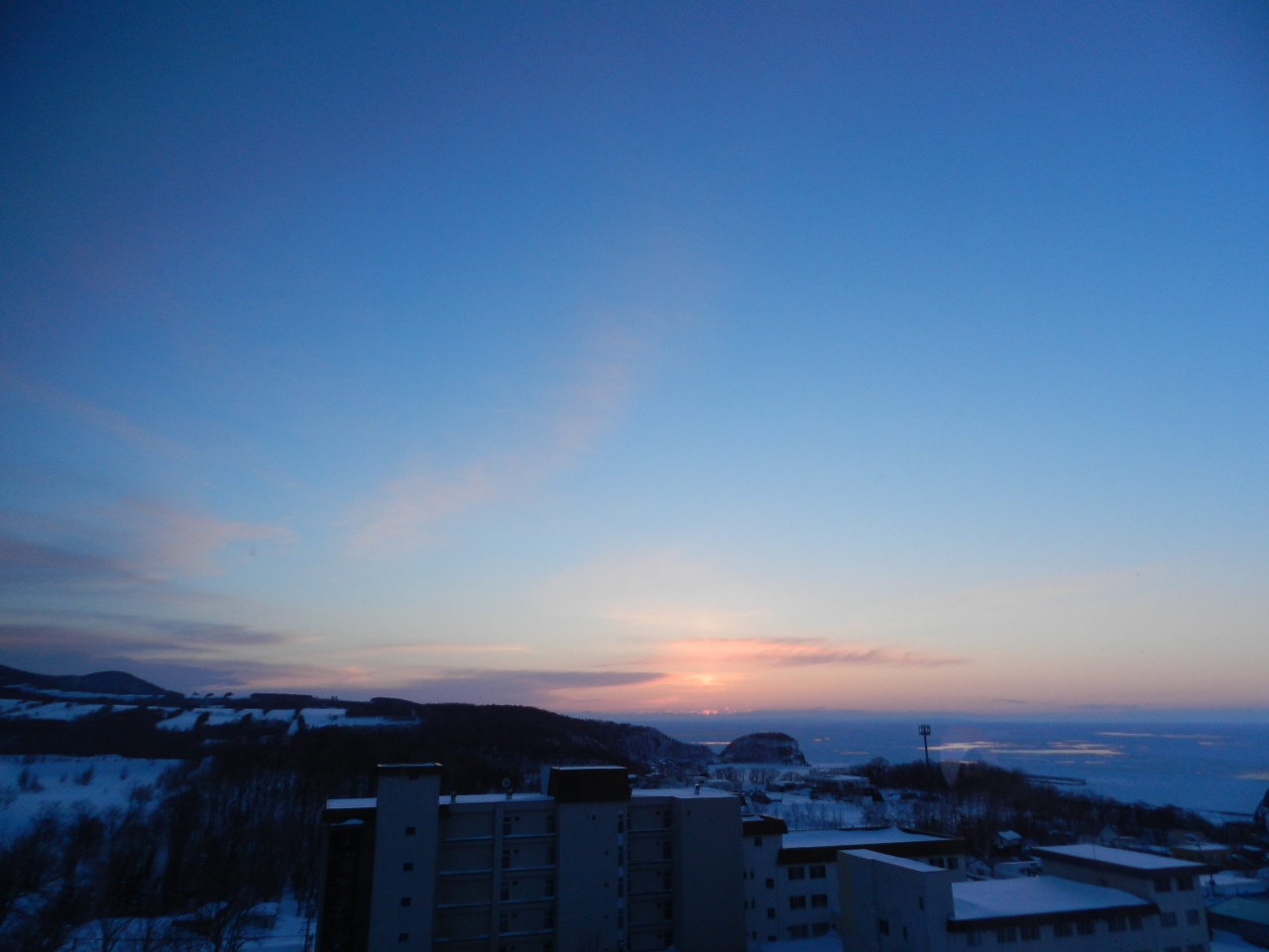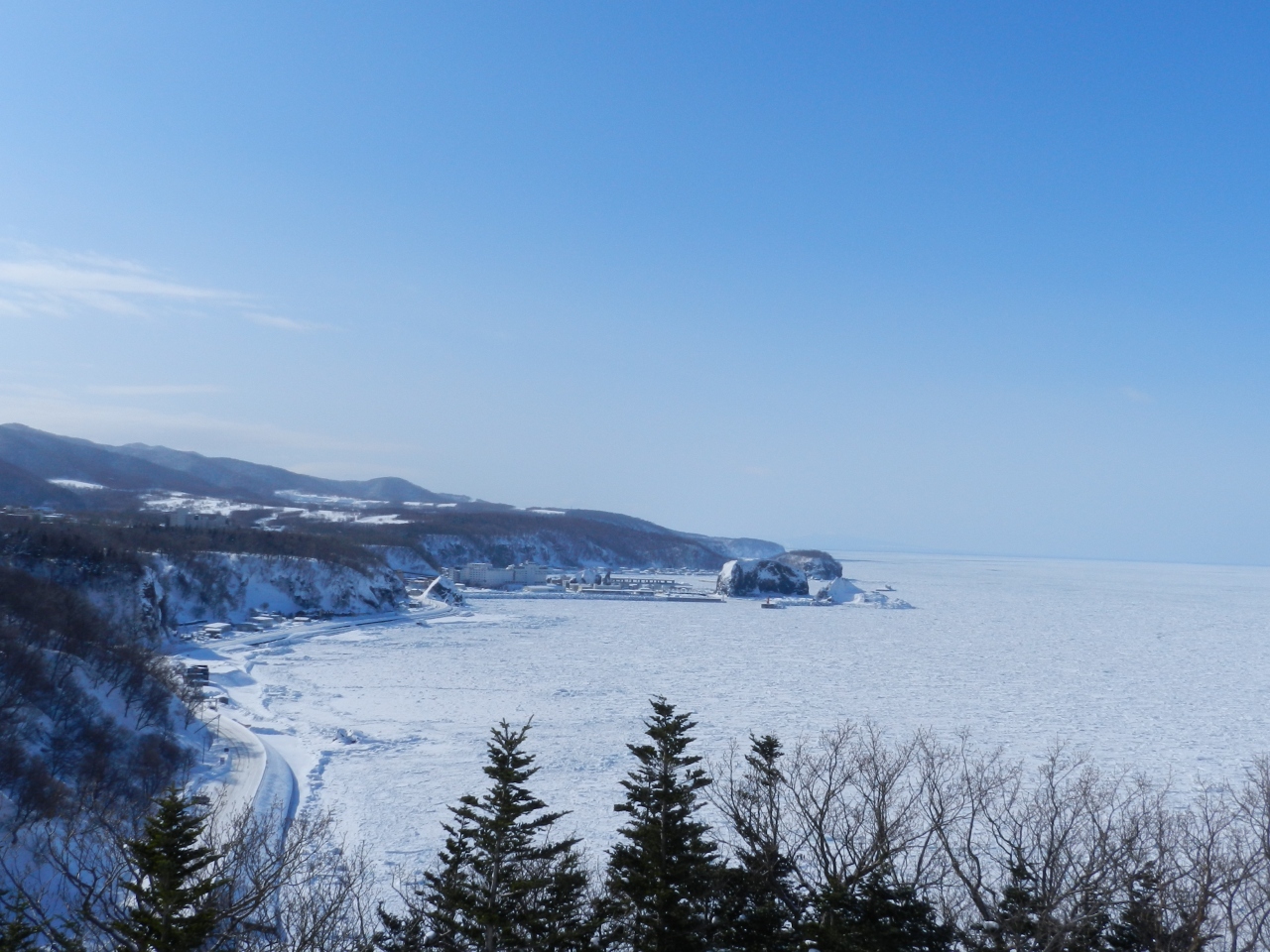 目をこらせば網走が、少し遠くにはオシンコシンの滝の裏の丘(?)が見えます。