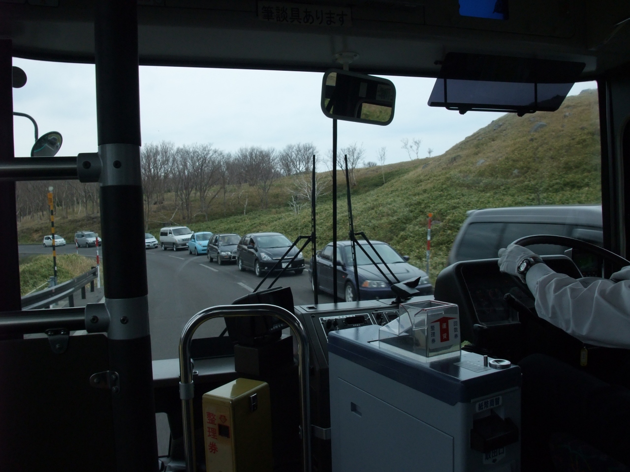 当たり前ですが、駐車待ちの車の列を横目に、バスは優先して通してくれます。