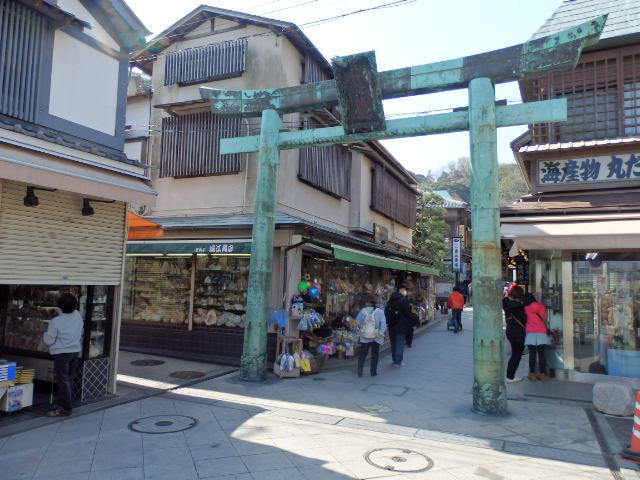 江ノ島にむかう道にはみやげ物店が並ぶ江ノ島駅(えのしまえき)