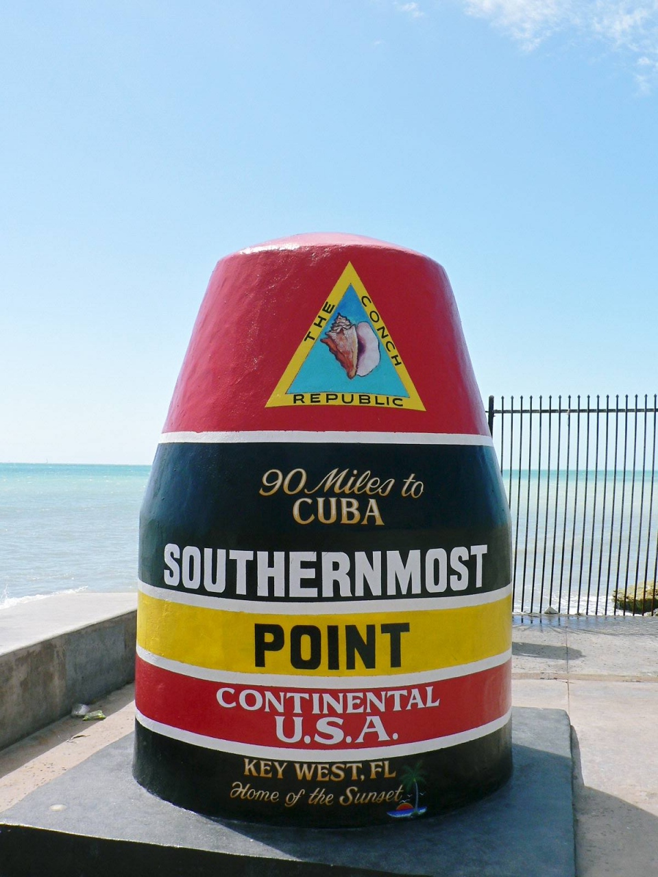 フロリダ、キー・ウエストのサザン・モスト・ポイントは米国のアメリカ最南端地点で最南端を示す碑が建っている。キー・ウエストで有名な場所なので記念撮影をする人が後を絶たない。ただし、ここは民間人が入れる最南端で実際の最南端は、さらに南にある軍事基地。