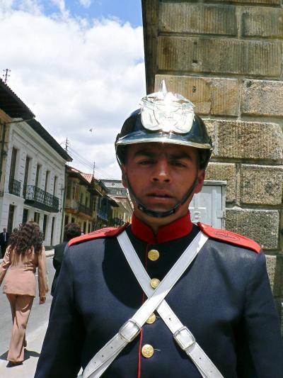 ボゴタの大統領官邸はコロンビア独立時の指導者アントニオ・ナリーニョの名前を冠したネオクラシカル様式の建物。1908年から大統領官邸として使用されている。毎日17:00−17:30頃衛兵の交代式が行われる。衛兵は写真撮影に応じてくれた。
