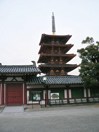 四天王寺は法隆寺とともに聖徳太子(574−622年)が593年から創建に関わった寺で、蘇我馬子の法興寺(飛鳥寺)と並び日本における本格的な仏教寺院としては最古。 四天王寺には「敬田院(きょうでんいん)」,「悲田院(ひでんいん)」,「施薬院(せやくいん)」,「療病院(りょうびょういん)」という四つの院があり、孤児や高齢者など身寄りのない人を救済したり(悲田院),病いを持つ人に医療や薬を施したり(施薬院,療病院),学問や精神的な救済をしたり(敬田院),貧しい民衆を助ける病院、学校の機能を持っていた。冠位十二階で人間は平等の機会があることを教えた聖徳太子ゆかりの寺にふさわしい万人の寺。地下鉄谷町線四天王寺前夕陽丘駅4号出口から南へ徒歩5分。中心伽藍300円、宝物館200円、本坊庭園300円。開館4-9月8:30−16:30、10−3月8:30−16:00 。