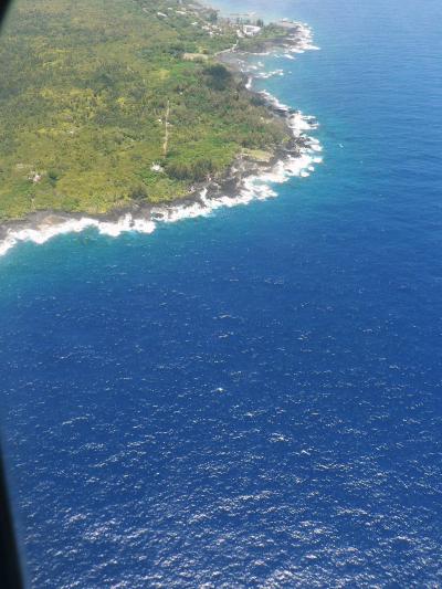 ハワイ島のキラウエア火山ヘリコプターツアーはコスタリカでインターネットで予約していた。ヘリコプターツアーは172ドル20700円はこれも日本のカード決済をしていたので予約できているか心配だったが、14時30分から約1時間、世界で最も活発に活動する活火山と言われるキラウエア火山を上空から見学できた。火山の火口から赤いマグマが見え、広大な溶岩流が注ぎ込む海岸でも白煙を巻き上げながら海面に落ち込む赤いマグマも見えた。迫力満点のツアーだった。