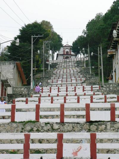メキシコ、サンクリストバル・デ・ラスカサスのサンクリストバル教会へは階段を登り丘の上から街全体を眺めることができる。だが、サンクリストバル教会周辺は昼間でも人通りが少なく、観光客を狙う強盗に遭うこともある。一人でサンクリストバル教会に行く場合はタクシーを利用するほうが安全だ。