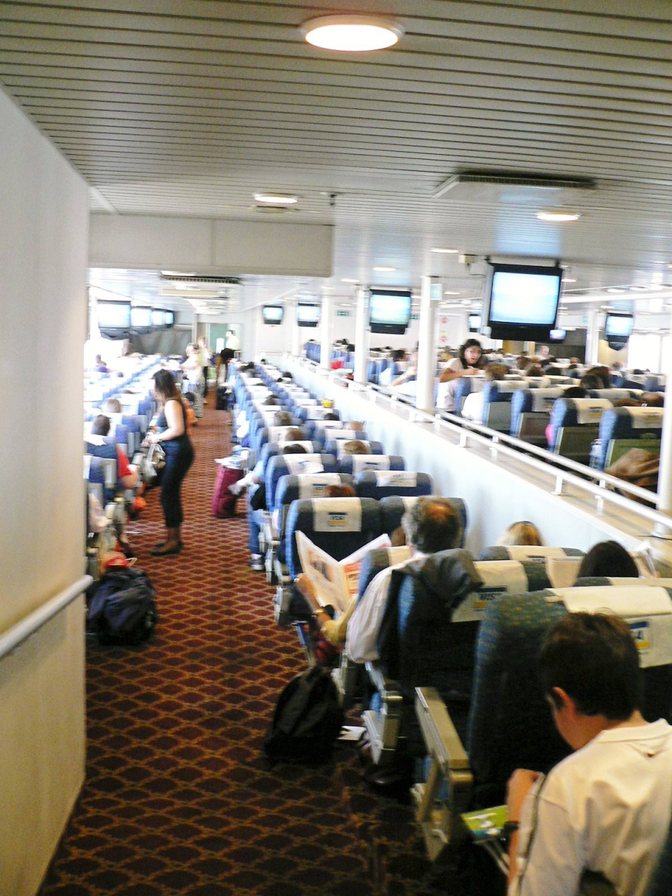 3.フェリーの設備;揺れは少なく、船酔いする人は見かけなかった。乗船時間は短いがレストランで食事もできる。