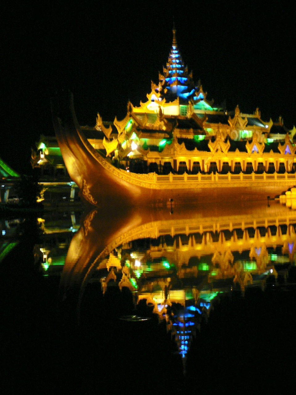 2.所在地;カンドージー湖上の黄金の船がレストランになっている。