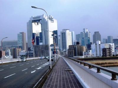 新十三大橋(しんじゅうそうおおはし)は1966年完成、一級河川・淀川にかかる792.8mの平面橋で大阪市北区中津(左岸)と同市淀川区新北野(右岸)を結んでいる。本格的な2主桁構造を採用した橋としては日本初とのことで北行き一方通行の片側4車線。約280m上流には十三大橋が架かっているが新十三大橋が開通する以前は十三大橋が中津・十三間のメインルートだった。周辺にはNTT十三専用橋 (ひとつ上流の橋)、JR東海道本線下淀橋梁 (ひとつ下流の橋)、淀川河川公園、大阪府立北野高等学校などがある。北行き一方通行の片側4車線だが十三大橋よりはかなり通行自動車が少ないように思った。
