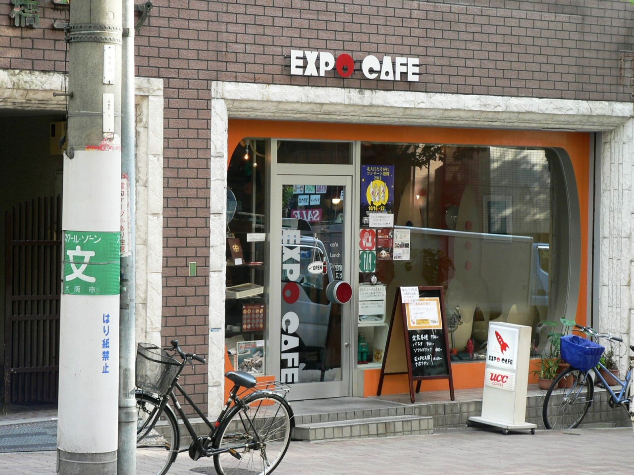 大阪・天満橋のビジネス街の中、北大江公園近くの静かな場所にオレンジを基調としたカフェがある。内装は「宇宙船をイメージした近未来風」とのこと。店の中央にドーム型のショーケースが設置されており、「太陽の塔」グッズなどが展示されている。万博グッズは万博公園の展示会、吹田市の万博記念展示会などにもたくさん貸し出すほどあるそうでドームの中身は時々入れ替えるそうだ。