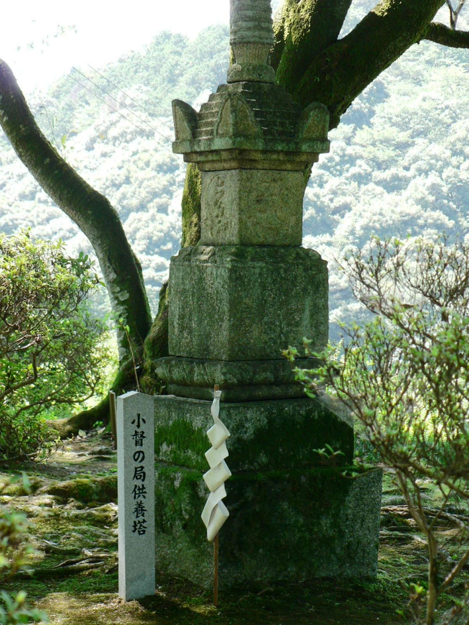 嵐山(あらしやま)の小督塚(こごうづか)。小督(1157年頃−1200年頃)は寵姫でありながら高倉天皇(たかくらてんのう1161−1181年)の正妻で時の権力者、平清盛(たいらのきよもり1118−1181年)の娘・中宮徳子(ちゅうぐう とくこ1155−1214年、後の建礼門院・けんれいもんいん)よりも天皇の大きな寵愛を受けたために清盛の怒りを買って嵯峨野に逃げるように隠遁した。