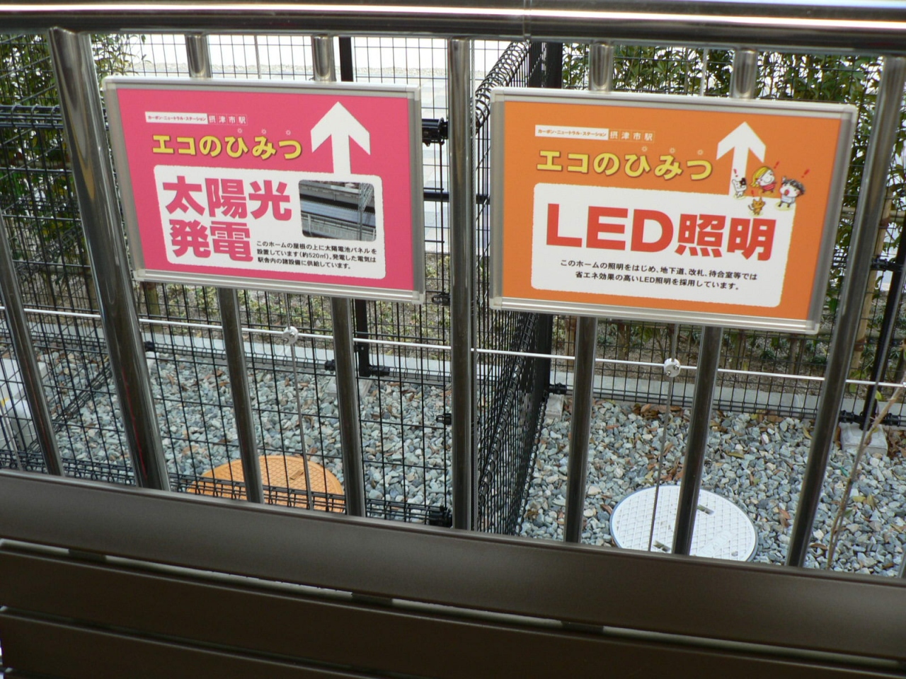 摂津市駅は駅に起因する二酸化炭素(CO2)排出量をゼロにすることを目指す日本初の「カーボン・ニュートラル・ステーション」とのことでキャッチフレーズは「エコで始まる新しい駅」。