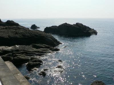 奇岩が続く海岸には地元の人たちが散策を楽しむ銭ヶ浜園地という公園があり、公園の近くには小さな漁船が数隻停泊する漁港があった。