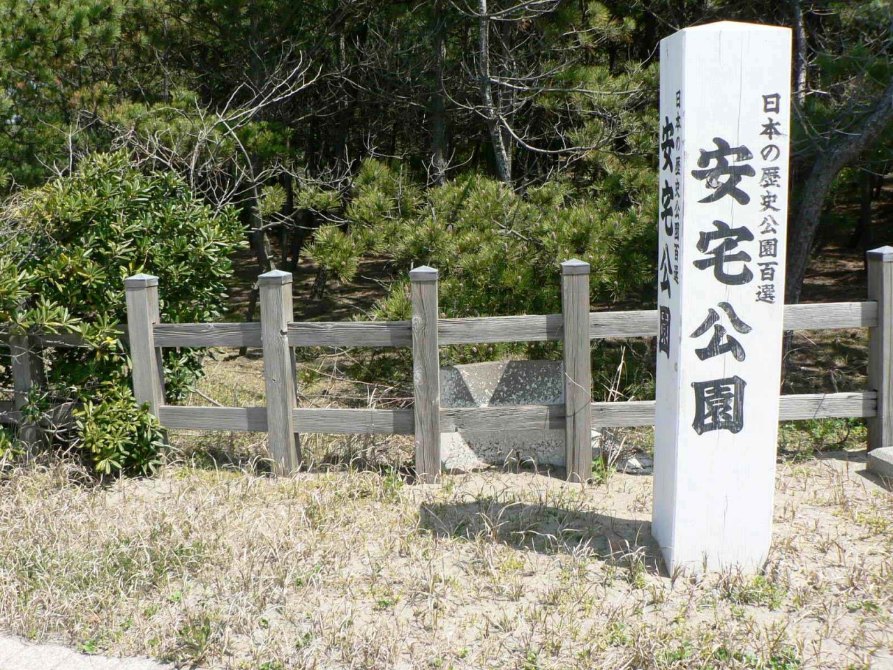 海辺の歴史公園、安宅公園は「歌舞伎十八番 勧進帳」で有名な安宅関跡を中心とした松林に囲まれている静かな公園。
