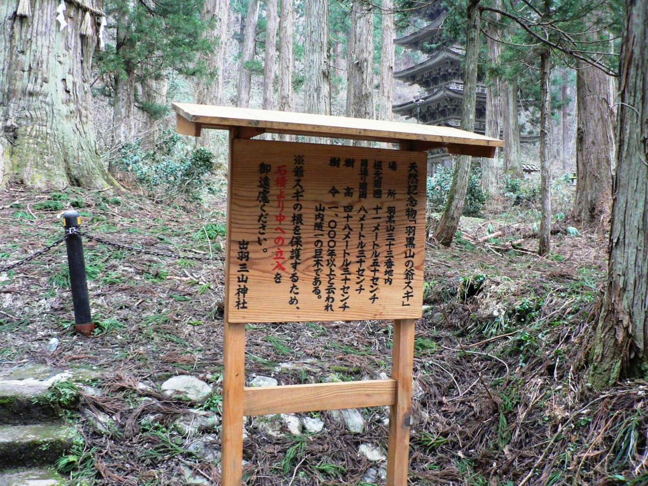 アクセス――― JR鶴岡駅から羽黒山頂行きバス40分、羽黒センター下車、徒歩5分- 旅行時期