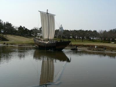 西廻り航路の開発により、庄内米を酒田港から江戸に回漕するために活躍した千石船を実物の二分の一に縮尺して再現したものが日和山公園にある。日本海沿岸をかたどった修景池に白い帆を張って浮かべられている。