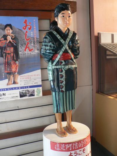 「庄内米歴史資料館」は稲作の歴史、稲のルーツ、品種改良、生産・保管・流通の過程などを、精緻な模型や展示パネルなどで紹介している。庄内米歴史資料館は、昭和60年に開館し、延べ入館者は平成21年3月現在で173万人に達しているとのこと。「庄内米歴史資料館」には「おしん像」も展示されていた。