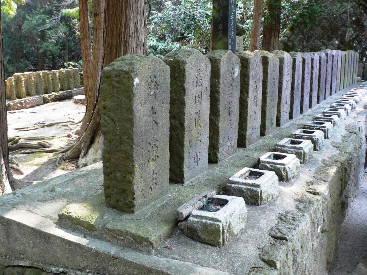 白虎隊の墓は飯盛山の山中にある。明治元年(1868)8月23日、戸ノ口堰から飯盛山北麓までのトンネル(長さ210メートル)を通って引揚げてきた白虎隊士20名は、飯盛山から炎上した城下を見て鶴ヶ城落城と判断、全員がその場で自決した(飯沼貞吉のみ蘇生)。