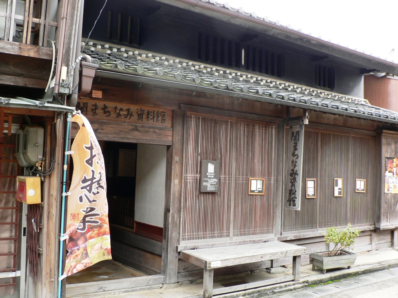 関まちなみ資料館の建物は、元の持主・別所マサさんから昭和60年に関町が買い取った町屋を、昭和61年度から3年かけて解体修理し、往時の姿に復元した建物。14代将軍家茂(在位1858~66)上洛時作成の「宿内軒別書上帳」には「別所屋勝次郎、間口四間、畳数廿八畳、二階畳数数拾壱畳」と、現在家屋と一致する記録があるそうで、この家の建築年代は文久年間(1861~64)以前とされる。