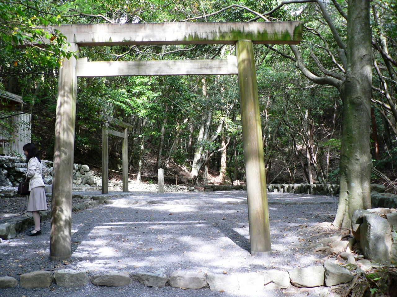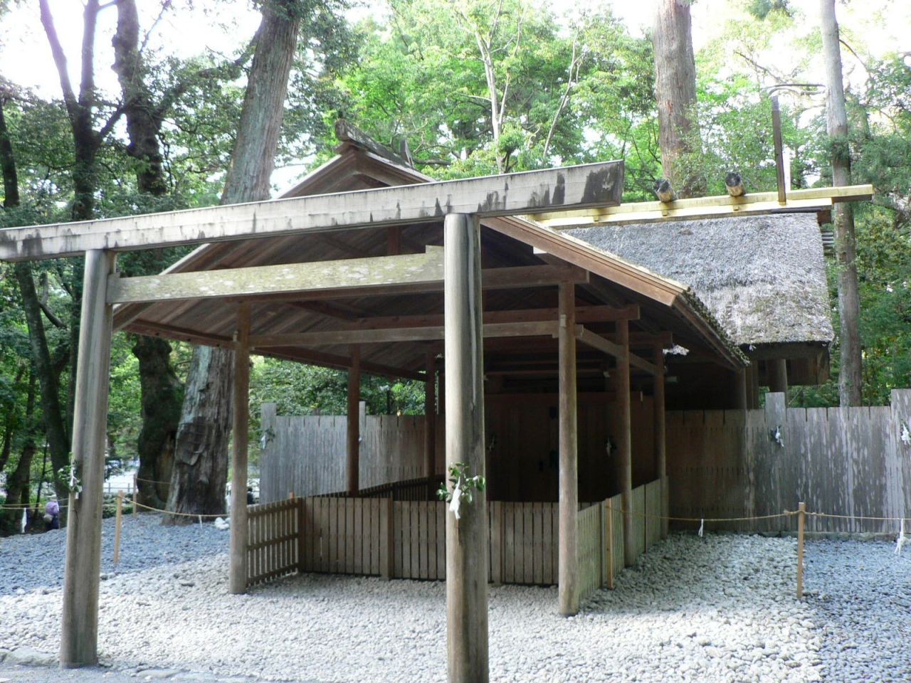 外宮から北に徒歩で10分で、楠(くす)、欅(けやき)、杉その他常緑の木々のおい茂った神域にある。