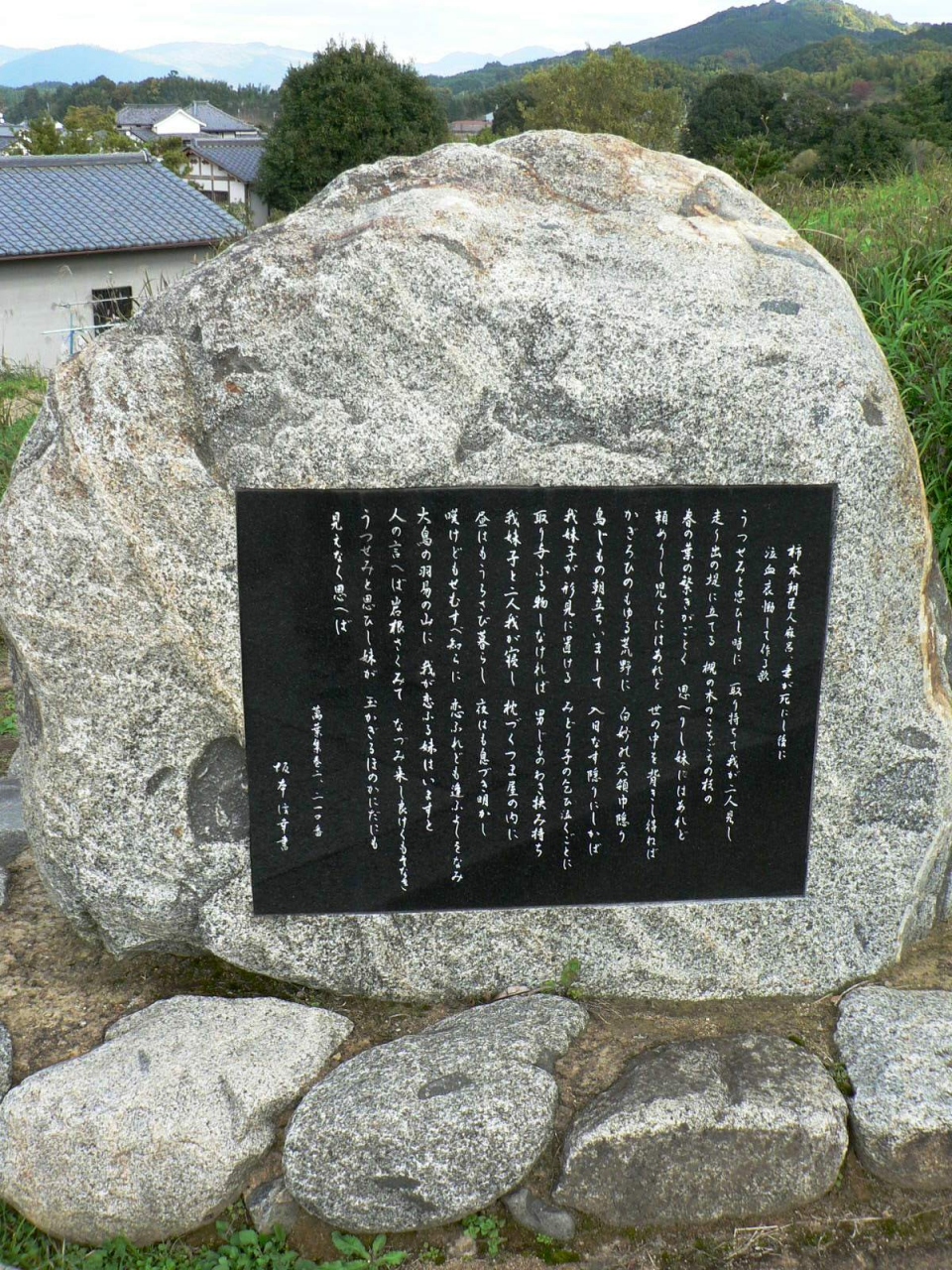 奈良、飛鳥聖徳太子生誕所に建つ柿本人麻呂の悲恋の歌碑(2008年11月)
