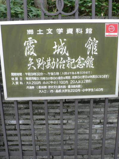 龍野は童謡「赤とんぼ」の作詞者、三木露風(1889−1964年)はじめ第2次世界大戦後も思想弾圧され獄中死した西田幾太郎門下の哲学者で「人生論ノート」、「哲学ノート」などの著 書で知られる三木 清 (みき きよし1897−1945)や与謝野鉄幹門下の詩人で犬養毅にも師事して人道主義・平和主義を称えた内海青潮(1884−1968年)などの文化人を輩出しており、矢野勘治旧邸横には三木露風・三木清・内海青潮などの文献資料を展示した「竜野文学館 霞城館(かじょうかん)」 が設けられている。1978年に開館された。