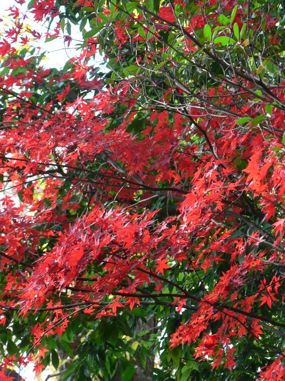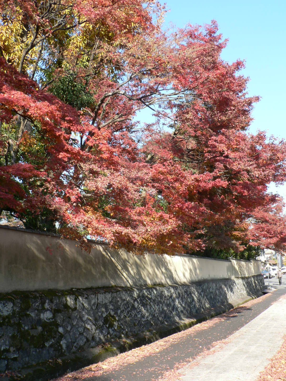(写真は土塀越しに幹を出す12月6日の紅葉)- 旅行時期