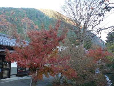 (写真は三千院参道脇の紅葉と少しだけ残った柿)- 旅行時期