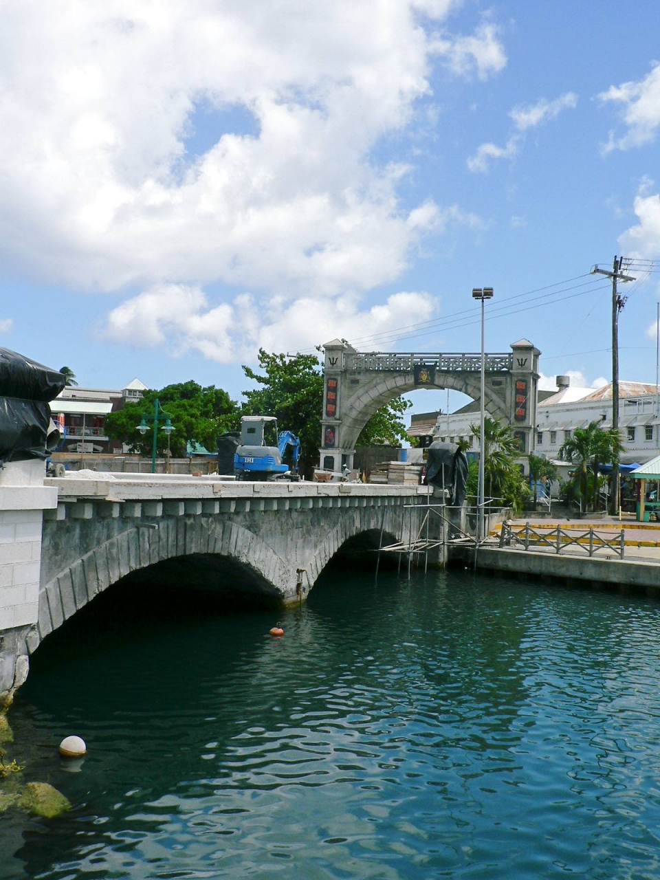 カリブの小国バルバドスの首都ブリッジタウンは人口約6000人、都市圏約10万人で街の名の通り橋が多い。1628年にイギリスにより建設され、街並みはイギリス植民地時代の面影が残っている。トラファルガー・スクウェアや英連邦で3番目に古い国会議事堂、イギリス本国にあるネルソン提督の像、ネルソン記念柱よりも早く建てられたネルソン提督像がある。観光地化された街で、ショッピング街、みやげ物店、トラベラーズ・チェックを扱う銀行もある。