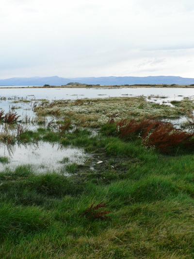 (写真はプエルト・ナタレスの海辺から見るパタゴニアの山)- 旅行時期