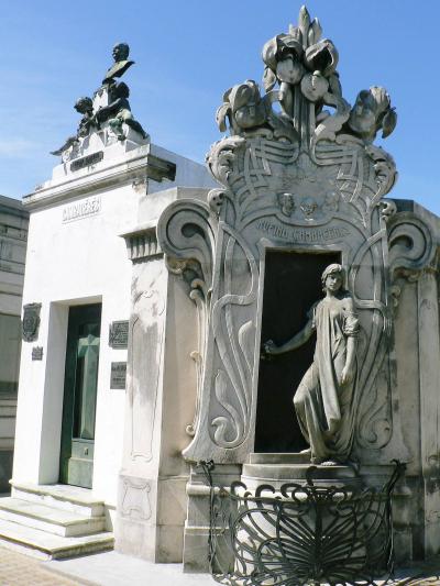 ブエノス・アイレスのエビータの墓はレコレータ地区のレコレータ墓地の中にある。非嫡出児として苦難の幼年期を送りながらペロン大統領夫人にまでのぼりつめ、政治面で功績を残した。アルゼンチンの人たちの尊敬を集め、ミュージカルや映画「エビータ」で脚光を浴びたエビータ。美術館のような豪華な彫刻の墓が並ぶ墓地だが、エビータの墓は質素でひっそりと佇んでいるが参拝の人たちは絶えない。