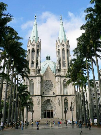 サンパウロのカテドラルは1910年頃から建造され1954年に完成したゴシック様式の比較的新しい教会。ドームの直径27m、塔の高さ65m、8000人収容できる立派な建物だ。セントロ地区のランドマークで日本人街からも見える。