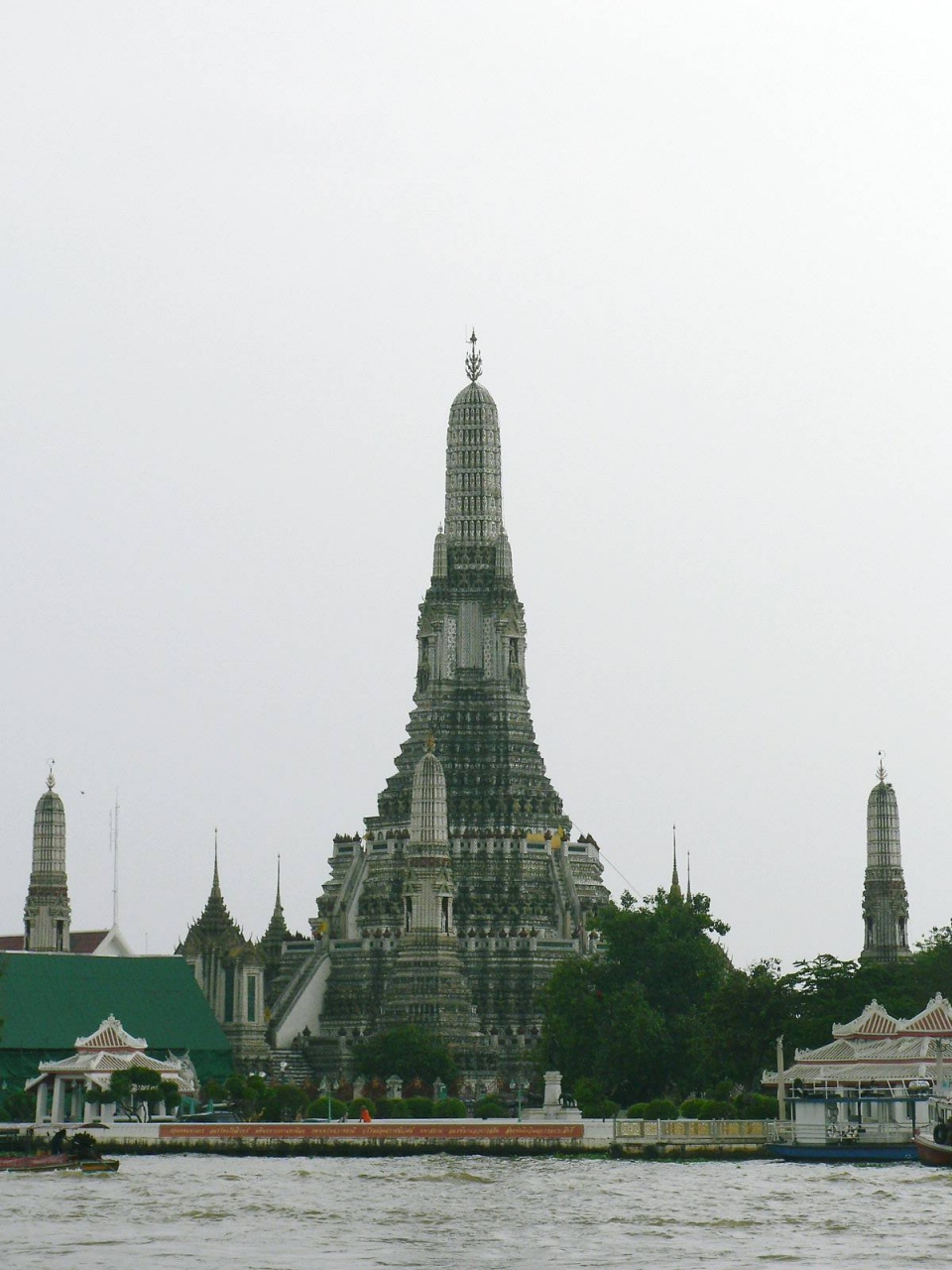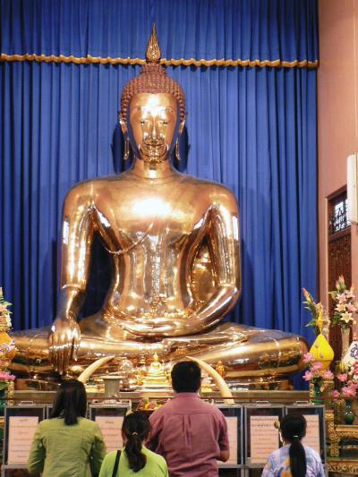 チャイナタウンの中心に位置するワット・トライミットは、1238年創建の寺院。本尊はスコータイ時代の純度60%、高さ3m、重さ5.5トンの金の仏像で時価120億円とのこと。盗難防止のために仏像全体が漆喰で覆われていたが、1953年にバンコク港の工事のためこの仏像がワット・トライミットに移されたときに漆喰がはがれて金の仏であることが発見されたそうだ。ホアランポーン駅から徒歩約5分