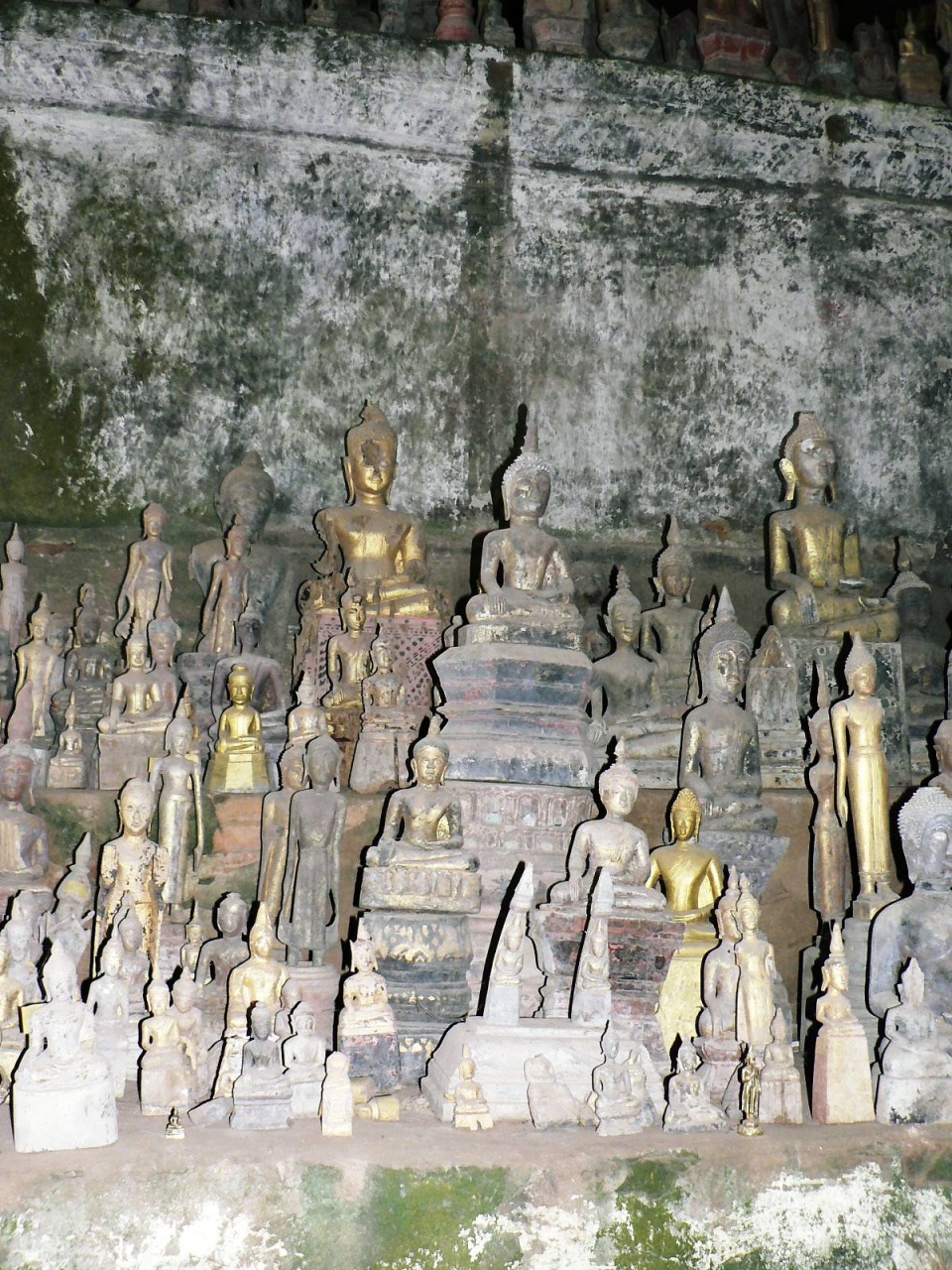 ルアンパバーンのパークウー洞窟には王宮博物館の桟橋より船で約2時間、メコン川を約30km遡る。16世紀にセ タティラート王により発見されたといわれている。2ヶ所の洞窟に4000体以上の小さな仏像が安置されておりおびただしい数に驚かされる。
