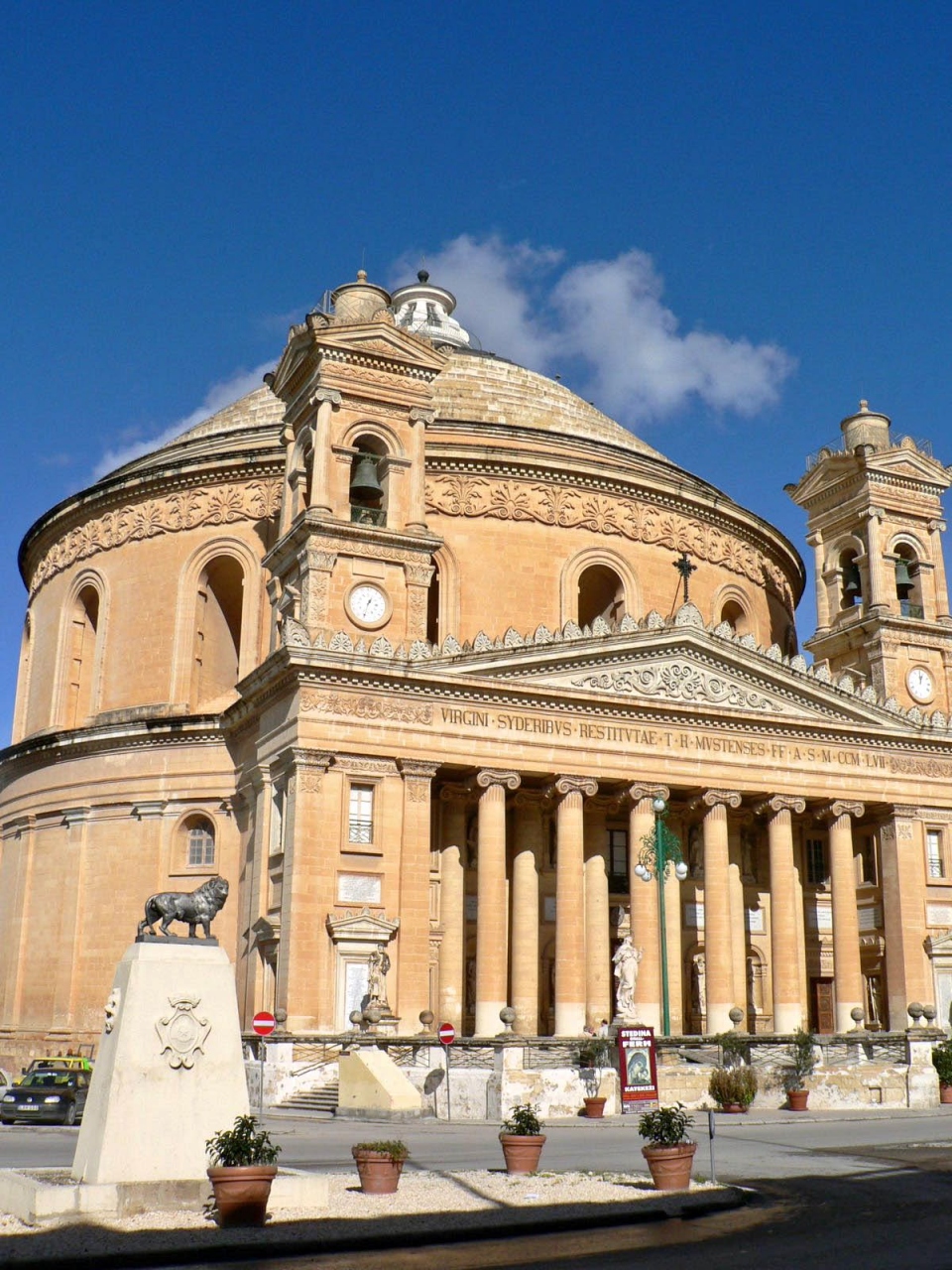 モスタの聖母マリア教会のドームは、支柱がないドーム教会の中で世界で最も大きいものの 1 つ。第二次世界大戦中に被弾したが、砲弾がさく裂しなかったことが聖母マリアの奇跡として有名。砲弾はそのまま残され、奇跡的な出来事を証明している。マルタ島の建築家が設計し、着工から27 年後の 1860年、聖母マリアの被昇天の祝日 (8月 15日) に完成している。